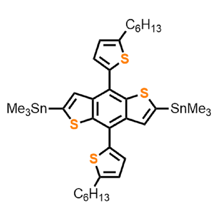 中文別名:(4,8-二(5-己基噻吩-2-基)苯并[1,2-b:4,5-b']二噻吩-2,6-二基)雙三甲基錫